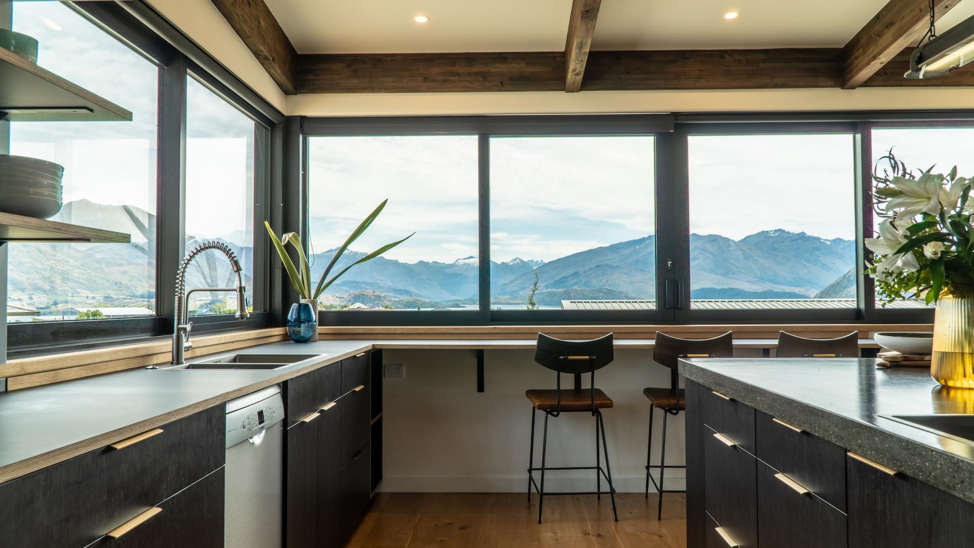 This new, impressive, architecturally designed holiday home is within walking distance to town and offers views of Lake Wānaka and the surrounding mountains.