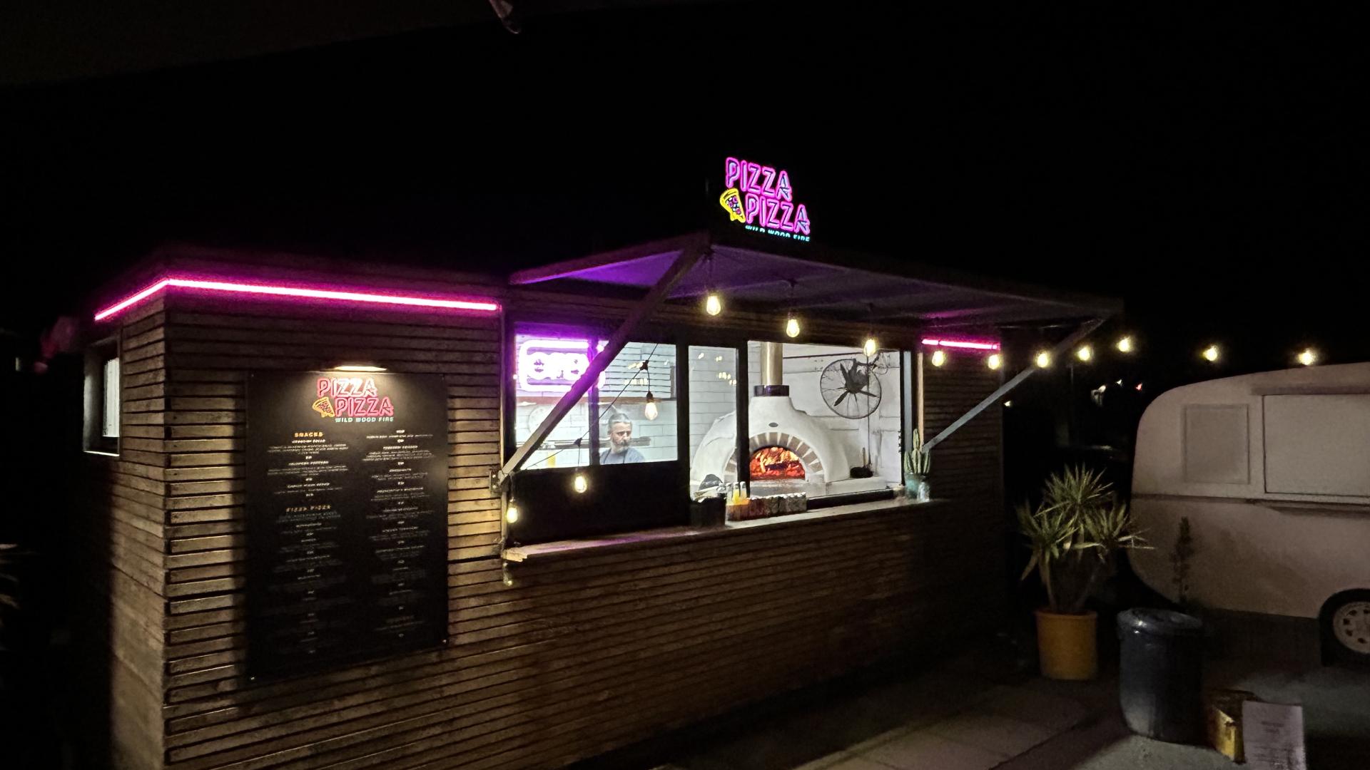 Delicious wood fired pizzas made with top quality ingredients, a sour dough thin base. Come and try their beautiful wood fired pizza oven located in the food trailer park on Brownston.
